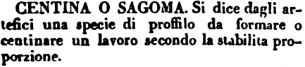 Centina o Sagoma - Si dice dagli artefici una specie di proffilo da formare o centinare un lavoro secondo la stabilita proporzione. [immagine]