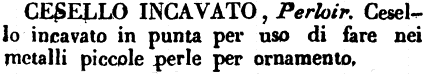 Cesello incavato - Perloir. Cesello incavato in punta per uso di fare nei metalli piccole perle per ornamento. [immagine]