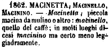 | »» Vedi anche la pagina frasi con macinino per una lista di esempi. |