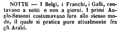 Notte - I Belgi, i Franchi, i Galli, contavano a notti e non a giorni. I primi Anglo-Sassoni costumavano fare allo stesso modo, il quale si pratica pure abitualmente tra gli Arabi. [immagine]