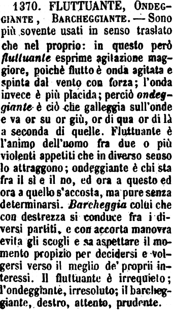| Usando "ondeggiante" (*) si possono ottenere i seguenti risultati: tonno * = tondeggiante. |