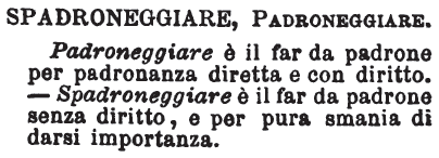 Spadroneggiare, Padroneggiare - Padroneggiare è il far da padrone per padronanza diretta e con diritto. - Spadroneggiare è il far da padrone senza diritto, e per pura smania di darsi importanza. [immagine]